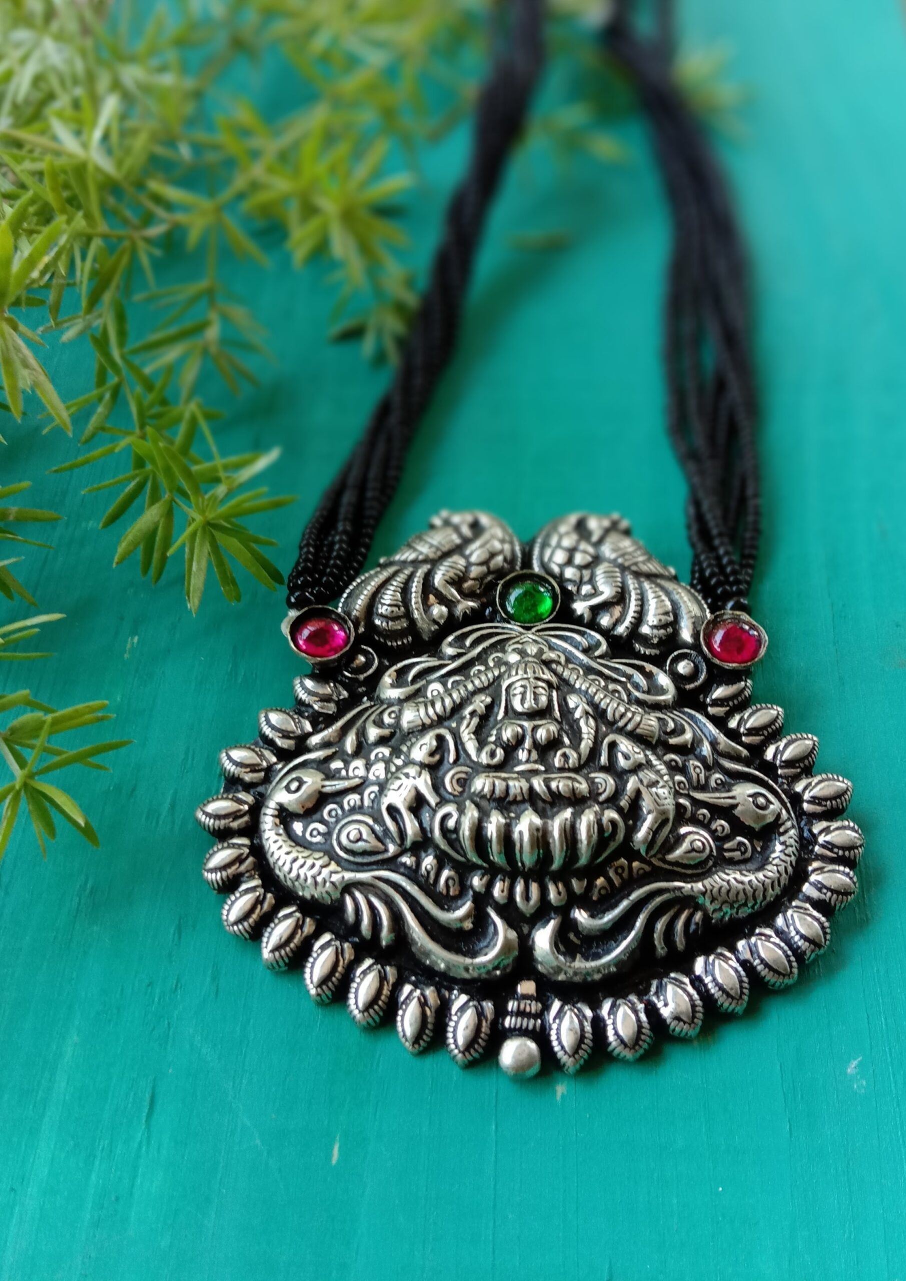 The Oxidized Mangalsutra from Yellow Frog features a vintage-inspired design, crafted with oxidized silver for a unique, antique finish. Its intricate patterns and detailed craftsmanship make it a perfect blend of tradition and modernity. Lightweight and comfortable, this piece is ideal for both daily wear and special occasions. The oxidized look adds a rustic charm that stands out. It’s a symbol of elegance and tradition with a contemporary twist.